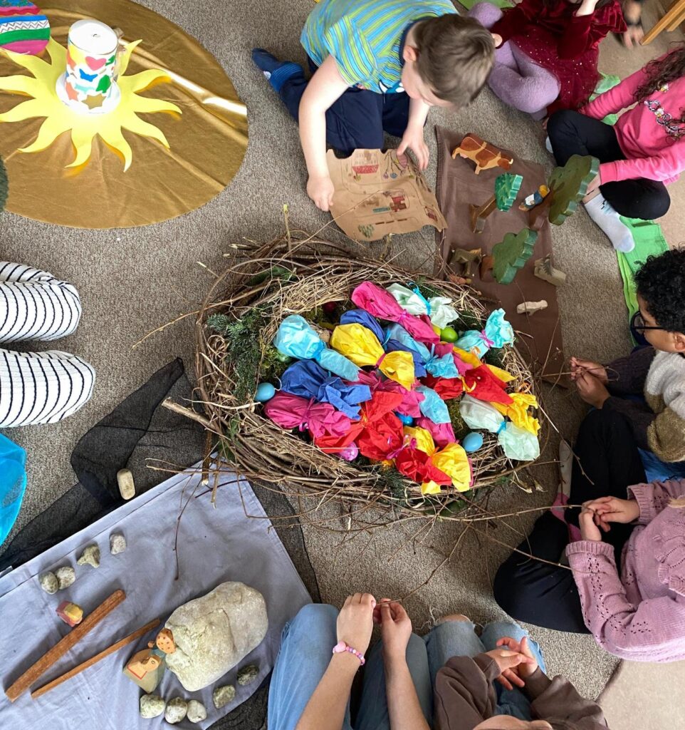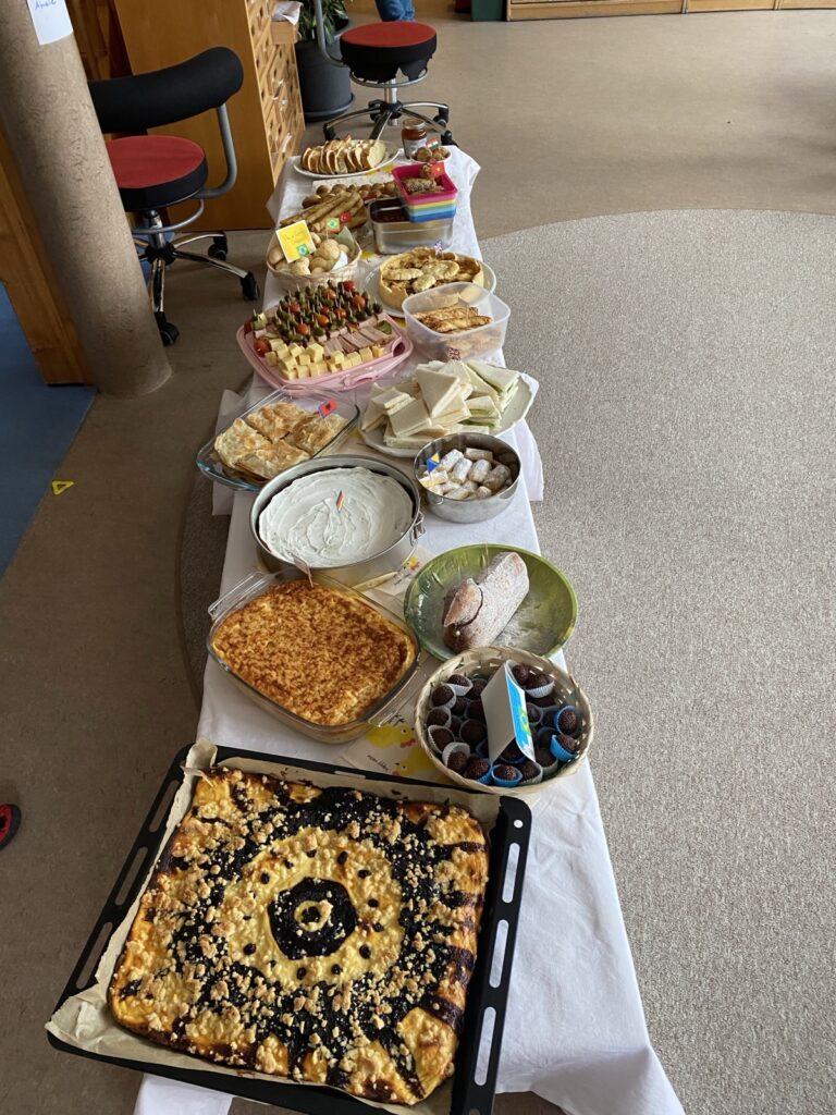 Bei uns im Kindergarten war ganz schön was los! In jeder Gruppe haben wir eine spannende Ostergeschichte gehört und gemeinsam eine festliche Brotzeit gemacht. Besonders lecker waren die bunten Ostereier – mmmh! 🥚🌈